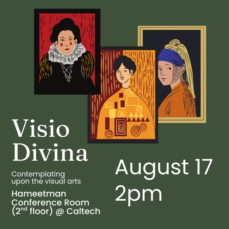 Visio Divina, or “sacred seeing,” is a spiritual practice which involves gazing upon an image as a means unto prayer. Join us at the Hameetman Conference Room at Caltech on August 17 @ 2pm for a curated art gallery in which we will practice contemplation and receiving God’s presence through the visual arts.